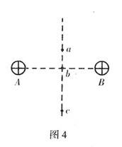 5.如图4,真空中有两个电量相同的正电荷A、B相距L放置,在AB连线的中垂线上有a、b、c三点,b点在AB连线的中点上.a较c离b近一些,现若将A、B两电荷同时向两边扩大相同距离,设无穷远处电势为零,则有 ( )