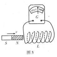 6.在一个长直螺线管L的两端,连接一个灵敏电流计,如图5所示,当一个与线圈等长的条形磁铁,在远处从左到右穿过线圈的过程中,下列判断正确的是 ( )