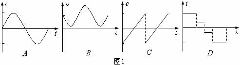 ①大小和方向均随时间而作周期性变化的电流叫做交变电流。上面的四个图象中,很容易看出其中的