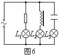 与一电容器串联,加上交变电流后,三个灯泡的亮度一样。当只将交变电流的角速度
