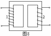对应训练:在绕制变压器时,某人误将两个线圈绕在如图8所示的变压器铁芯的左、右两个臂上,当通以交变电流时,每个线圈产生的磁通量都只有一半通过另一个线圈,另一半则通过中间的臂。已知线圈1、2的匝数之比为