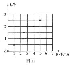 ②用伏安法测金属丝的电阻时,测出了包括(0,0)在内的6组电流I和电压U的值,并已经标在了如图11所示的坐标纸上,请用铅笔和直尺在坐标纸上画出合理的图线,并求出该段金属丝的电阻Rx=__________Ω.