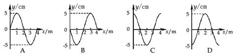15.一列简谐横波沿x轴正方向传播,波速为υ= 1m/s,已知波源在坐标原点处,波源的振动图象如图所示,则在下列选项中能够正确表示t= 4s时波动图象的是