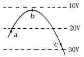 如图所示,三条平行等距的虚线表示电场中的三个等势面,电势值分别为10V、20V、30V,实线是一带负电的粒子(不计重力)在该区域内的运动轨迹,对于轨迹上的a、b、c三点下列说法正确的是