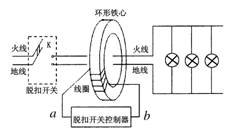 在照明电路中,为了安全,一般在电能表后面电路上安接一漏电保护器,如图所示,当漏电保护器的ab两端无电压时,脱扣开关K能始终保持接通,当ab两端有电压时,脱扣开关K立即断开,则下列说法正确的是