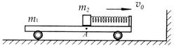 24.(18分)如图所示,在光滑水平地面上,有一质量m1= 4.0kg的平板小车,小车的右端有一固定的竖直挡板,挡板上固定一轻质细弹簧。位于小车上A点处质量m2= 1.0kg的木块(可视为质点)与弹簧的左端相接触但不连接,此时弹簧与木块间无相互作用力。木块与A点左侧的车面之间的动摩擦因数μ= 0.40,木块与A点右侧的车面之间的摩擦可忽略不计。现小车与木块一起以v0= 2.0m/s的初速度向右运动,小车将与其右侧的竖直墙壁发生碰撞,已知碰撞时间极短,碰撞后小车以v 1= 1.0m/s的速度反向弹回,已知重力加速度g取10m/s2,弹簧始终处于弹性限度内。求: