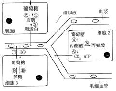 30.(20分)细胞是生物新陈代谢的主要场所。右图是人体局部组织内糖类、脂质、蛋白质代谢的简图,请据图回答: