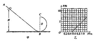8. (2010聊城一模)(15分)在半径为R=5000km某星球表面,宇航员做了如下实验,实验装置如图甲所示,竖直平面内的光滑轨道由斜轨道AB和圆弧轨道BC组成,将质量m=0.2kg的小球,从轨道AB上的高H处的某点静止释放,用力传感器测出小球经过C点时对轨道的压力F,改变H的大小,可测出F随H的变化关系如图乙所示,求: