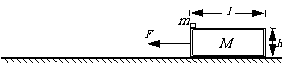 10. (2010青岛一模)(16分)长为 l = 2 m、高为 h = 1.25 m、质量为 M = 2 kg的木箱静止在水平地面上,它与地面间的动摩擦因数为 μ 1 = 0.2,在木箱的左端放一质量为 m = 1 kg的小铁块,铁块与木箱间的动摩擦因数为 μ 2 = 0.1,现以 F = 11N的水平拉力向左拉动木箱,g取10 m/s2,求: