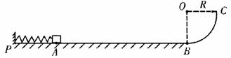 =0.1,AB段长度L=2m,BC段光滑,半径R=lm.轻质弹簧劲度系数k=200N/m,左端固定于P点,右端处于自由状态时位于A点.现用力推质量m=2kg的小滑块,使其缓慢压缩弹簧,当推力做功W=25J时撤去推力.已知弹簧弹性势能表达式