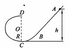 13.(8分)如图所示,光滑圆弧轨道与光滑斜面在B点平滑连接,圆弧半径为R=0.4 m,一半径很小、质量为m=0.2 kg的小球从光滑斜面上A点由静止释放,恰好能通过圆弧轨道最高点D,g取10 m/s2.求: