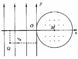 15.(12分)如图所示,在平面坐标系xoy内,第Ⅱ、Ⅲ象限内存在沿y轴正方向的匀强电场,第I、Ⅳ象限内存在半径为L的圆形匀强磁场,磁场圆心在M(L,0)点,磁场方向垂直于坐标平面向外.一带正电粒子从第Ⅲ象限中的Q(一2L,一L)点以速度