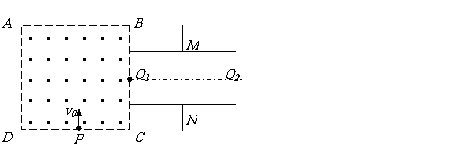 20.(12分)如图所示,在真空中,边长为2b的虚线所围的正方形区域ABCD内存在匀强磁场,磁场方向垂直纸面向外.在磁场右侧有一对平行金属板M和N,两板间距离为b,板长为2b,O1O2为两板的中心线,且O1为磁场右边界BC边的中点.有一电荷量为q、质量为m的带正电的粒子,以速率υ0从DC边某点P点沿垂直于DC的方向进人磁场,当粒子从O1点沿O1O2方向飞出磁场的同时,给M、N板间加上如图所示交变电压u(图中U0与T未知).最后粒子刚好以平行于N板的速度,从N板的边缘飞出.不计平行金属板两端的边缘效应及粒子所受的重力.求: