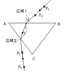 ⑵如图所示,某同学用插针法测量三棱镜的折射率.在区域Ⅰ内已插好两枚大头针P1、P2,在区域Ⅱ内可观察到大头针的像,再插大头针P3、P4,以挡住P1、P2的像.