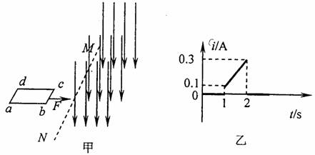 15.(15分)如图甲所示,光滑绝缘水平面上,磁感应强度B=2T的匀强磁场以虚线MN为左边界,MN的左侧有一质量m=0.1kg,bc边长L1=0.2m,电阻R=2Ω的矩形线圈abcd.t=0时,用一恒定拉力F拉线圈,使其由静止开始向右做匀加速运动,经过时间1 s,线圈的6c边到达磁场边界MN,此时立即将拉力F改为变力,又经过1s,线圈恰好完全进入磁场.整个运动过程中,线圈中感应电流i随时间t变化的图象如图乙所示.