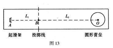 (15分)2010年2月在加拿大温哥华举行的第2l届冬季奥运会上,冰壶运动再次成为人们关注的热点,中国队也取得了较好的成绩.如图13,假设质量为m的冰壶在运动员的操控下,先从起滑架A点由静止开始加速启动,经过投掷线B时释放,以后匀减速自由滑行刚好能滑至营垒中心O停下.已知AB相距L1,BO相距L2,冰壶与冰面各处动摩擦因数均为μ,重力加速度为g.