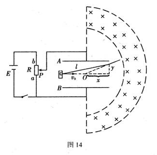m.将变阻器滑动头由a向b慢慢滑动,改变两板间的电压时,带电粒子均能从不同位置穿出极板射向右侧磁场,且两板间电压最大时,对应的粒子恰能从极板右侧边缘穿出.