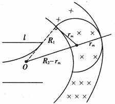 R12+rm2=(R2-rm)2 (2分)