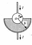 ⑵某个由导电介质制成的电阻截面如图所示,导电介质的电阻率为ρ,制成内、外半径分别为a和b的半球壳层形状(图中阴影部分),半径为a、电阻不计的球形电极被嵌入导电介质的球心成为一个引出电极,在导电介质的外层球壳上镀上一层电阻不计的金属膜成为另外一个电极.设该电阻的阻