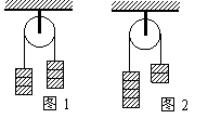 ⑷如图1所示,一轻绳跨过定滑轮,两端各悬挂三个质量皆相等的木块,呈平衡状态。现将右端的一个木块取下,改挂至左端,如图2所示。若摩擦力可不计,试问绳上张力变为原来平衡状态时的几倍?( )