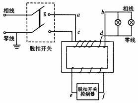 D.当站在绝缘物上的带电工作的人两手分别触到b线和d线时(双线触电)脱扣开关会自动断开,即有触电保护作用