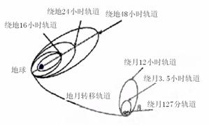 ⑷2009年10月,北京航天飞行控制中心对嫦娥一号卫星实施首次变轨并获得成功,首次变轨是在远地点发动机点火使卫星加速的。卫星的近地点高度由约200公里抬高到了约600公里,如图卫星正式进入绕地16小时轨道。接下来卫星在近地点处还要借助自身发动机的推动经过三次变轨先后进入绕地24小时轨道、绕地48小时轨道,最后进入地月转移轨道经过漫长的施行后接近月球,在月球近月点的位置仍要借助自身的发动机的作用,