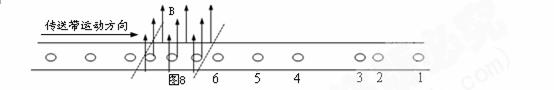 ⑼如图8所示,通过水平绝缘传送带输送完全相同的铜线圈,线圈等距离排列,且与传送带以相同的速度匀速运动.为了检测出个别未闭合的不合格线
