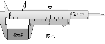 (2)如图乙所示,用游标卡尺测得遮光条的宽度d= cm;实验时将滑块从图示位置由静止释放,由数字计时器读出遮光条通过光电门的时间Δt=1.2×10-2s,则滑块经过光电门时的瞬时速度为 m/s.在本次实验中还需要测量的物理量有:钩码的质量m、 和 (用文字说明并附上相应的字母).