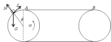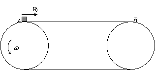 12、如图所示为一皮带传动装置,轮与带间不打滑,两轮半径均为r=0.5m,均作逆时针转动,角速度恒为ω=4rad/s,两轮的最高点AB间距离为sAB=2m.某时刻,一质量为m=1kg可视为质点的物体以v0=4m/s的初速度从传送带上A点向右运动.已知物体与传送带间动摩擦因数为μ=0.5,计算中重力加速度取g=10m/s2.求:
