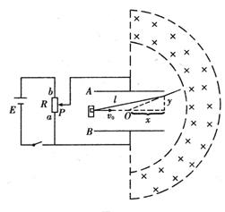 m.将变阻器滑动头由a向b慢慢滑动,改变两板间的电压时,带电粒子均能从不同位置穿出极板射向右侧磁场.