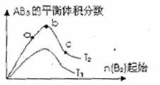 2AB2(g)化学平衡状态的影响,得到如右图所示的变化规律(图中T表示温度,n表示物质的量),据此可得出的判断结论不正确的是 ( )