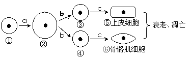 4.下图为人体细胞的分裂、分化、衰老和凋亡过程的示意图,图中①-⑥为各个时期的细胞,a-c表示细胞所进行的生理过程。据图分析,下列叙述正确的是