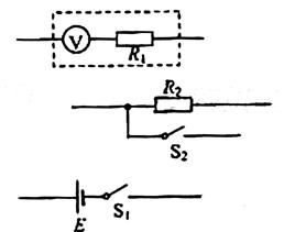 (12分)一直流电压表,量程为1 V,内阻为1 000Ω,现将一阻值为5000~7000Ω之间的固定电阻R1与此电压表串联,以扩大电压表的量程.为求得扩大后量程的准确值,再给定一直流电源(电动势E为6~7 V,内阻可忽略不计),一阻值R2=2000Ω的固定电阻,两个单刀开关S1、S2及若干线.