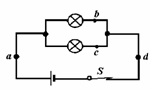 8 (09常德) 如图所示电路,闭合开关后,比较a、b、c、d四处电流的大小,其中正确的是