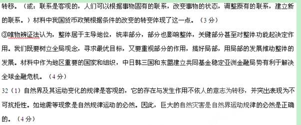 29、问题:指出上述材料是如何体现辩证唯物论道理的?(9分)