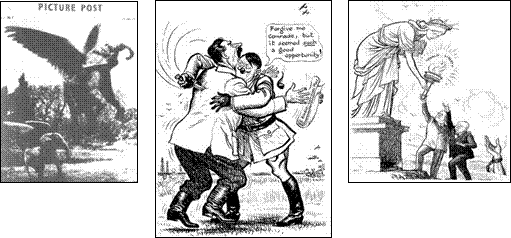 35.(10分) [历史--20世纪的战争与和平]漫画可以形象地再现历史。观察下列关于二战时期的漫画,回答问题。