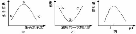 ①甲图A点时的生长素浓度促进植物生长,C点时的生长素浓度抑制生长