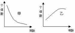 5.图甲和图乙表示某种生物种群中个体数量和年龄的关系曲线,如不考虑其他因素,种群甲和种群乙的年龄组成分别属于 ( )