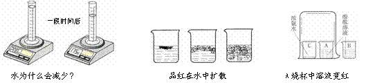 9.下图中的三个实验都是课本中用来说明分子的有关性质的实验,你认为正确的说法是( )
