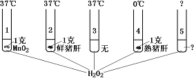 25.(10分)下图是验证酶的催化特性的几组对比实验,1―5号试管内装有等量的H202液。1―4号试管控制温度与投入物品如图所示,请回答: