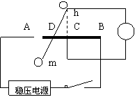 32、(20分)如图所示是悬球式加速度计,它可以用来测定沿水平轨道运动的列车的加速度。m是一个金属球,它系在金属丝的下端,金属丝的上端悬挂在O点,AB是一根长为L的均匀电阻丝,其阻值为R,金属丝与电阻丝接触良好,摩擦不计,电阻丝的中点C焊接一根导线,从D点也引出一根导线,两线之间接入一个电压表V(金属丝和导线电阻不计)图中虚线OC与AB相垂直,且OC=h,电阻丝AB接在电压为U的稳压电源上,整个装置固定在列车中,使AB沿着车前进的方向,列车静止时,金属丝呈竖直状态,当列车加速或减速前进时,金属丝将偏离竖直方向,从电压表的读数变化可测出加速度的大小.
