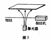 抽制细线时可用激光监控其粗细,如图5所示,激光束越过细丝时产生的条纹和它通过遮光板上的一条同样宽度的窄缝规律相同,则