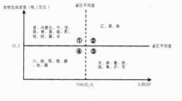 “货物生成密度”是指一个区域货物发送量与其国民生产总值的比值(单位为吨/万元)。下图是我国2000年货物生成密度类型区分示意图,完成10-11题。