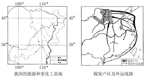 (3)左上图所示虚线范围内,在能源重化工基地的发展与建设中面临的重大问题有哪些?应如何解决?(9分)