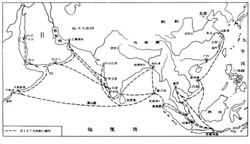 (4)图中这次远洋航行的国内背景是什么?最远到达什么地方“?(4分)
