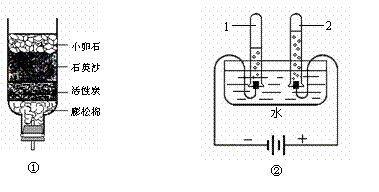 (2)在实验室用上图所示装置(如图②所示)探究水的组成时。当接通电源一段时间后,