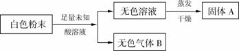 (1)写出物质名称:B ▲ ,未知酸溶液 ▲ 。 (2)这包白色粉末的组成可能是 ▲ ;有关反应的化学方程式为 ▲ 。