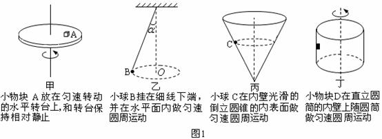 例题2.下图1中的四种情况中,各质点都在作匀速圆周运动,分别指出向心力来源(填在相应的空格处)