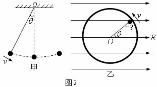 图乙中,水平向右的匀强电场中,带负电的小球沿竖直放置的光滑轨道上升,以速度
