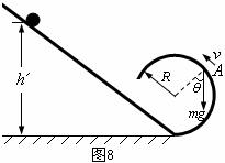 ,所以小球在从圆形轨道的右侧向上滚动的过程中将不会到达圆形轨道的最高点,在到达最高点之前就已经脱离轨道。如图9所示,设小球在
